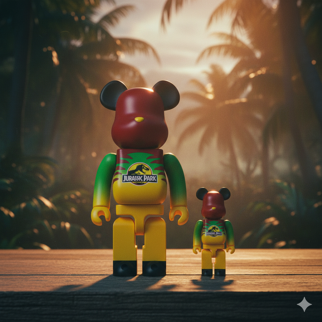 Perfect for Jurassic Park fans and Bearbrick collectors alike, this unique set adds a prehistoric twist to any display. Whether showcased on a shelf or as part of a larger collection, the 400% & 100% BEARBRICK Jurassic Park set combines nostalgia and collectible artistry to stand out in any space.