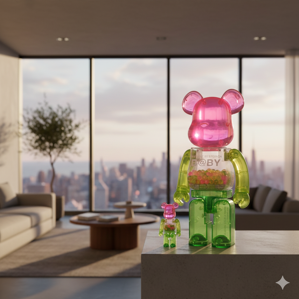 The 400% figure stands approximately 28 cm (11 inches) tall, while the 100% figure is 7 cm (2.75 inches), offering both a striking display piece and a compact companion version. Made from durable plastic with a glossy finish, the figures maintain the brand’s hallmark silhouette while introducing a softer, more youthful aesthetic.