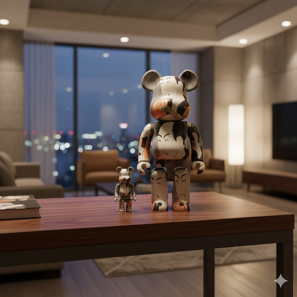The 400% & 100% BEARBRICK Boston Museum (Toshusai Sharaku) celebrates the iconic artistry of Toshusai Sharaku, a legendary Edo-period ukiyo-e artist. Produced by Medicom Toy, this collectible honors Sharaku’s bold Kabuki portraits, known for their dramatic expressions and intricate details. His works have left a lasting legacy in Japanese art, and this BEARBRICK set transforms them into a modern collectible format.