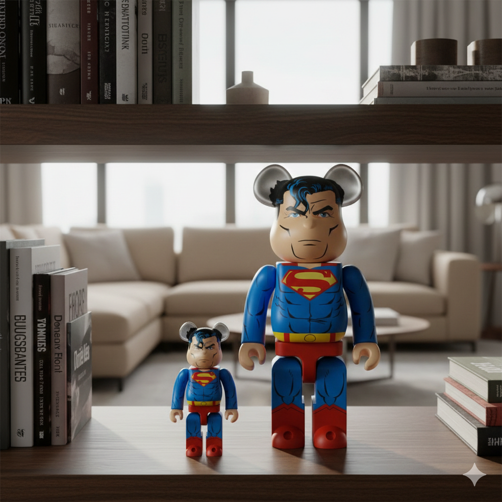 • 400% Bearbrick: Stands at 28 cm (11 inches), providing a larger canvas that accentuates the intricate design elements and vibrant colors associated with Superman.