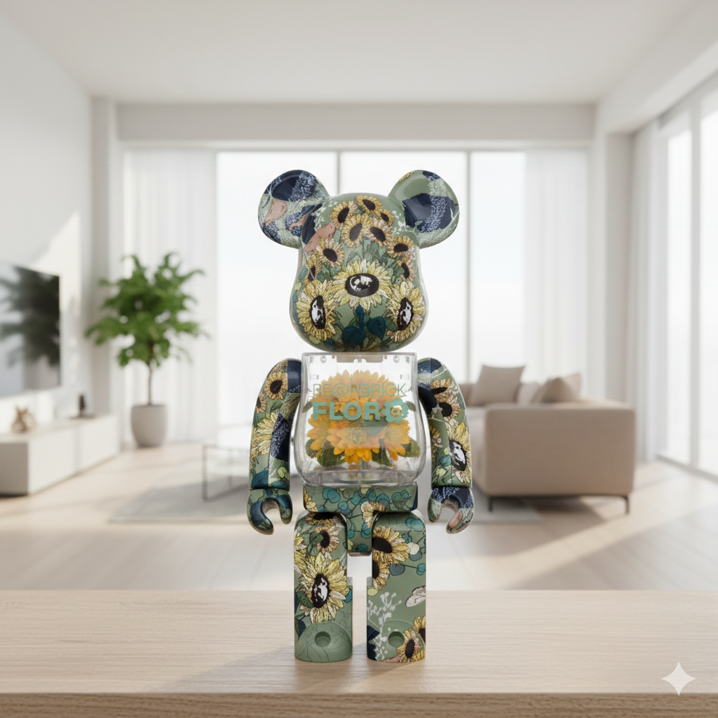Whether displayed as a centerpiece or as part of a larger collection, the 400% Bearbrick Flor@ Sunflower brings a refreshing and sophisticated touch to any space. Its timeless design makes it ideal for art enthusiasts, collectors, and anyone who appreciates floral themes. Additionally, the figure’s intricate craftsmanship ensures it stands out as a statement piece in any room.