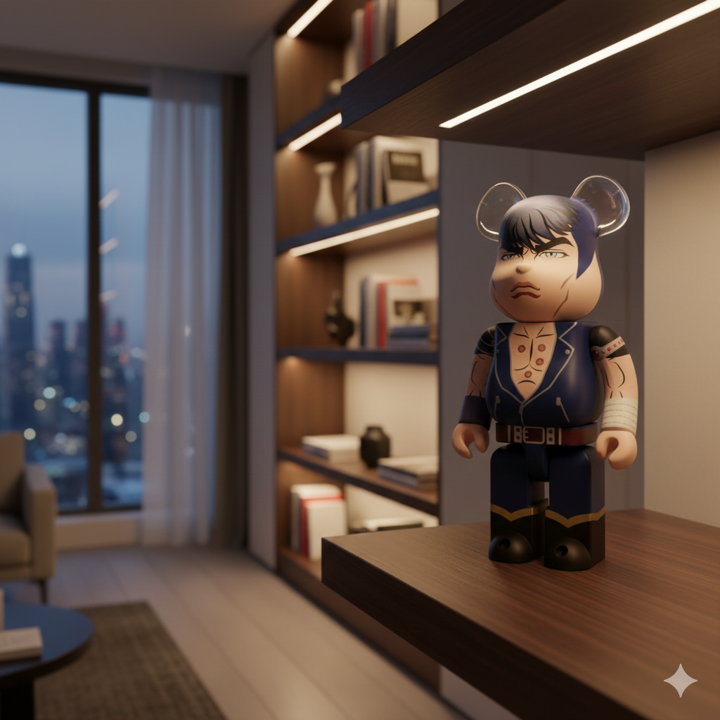 With meticulous craftsmanship, this BEARBRICK perfectly replicates Kenshiro’s signature battle-scarred appearance. The detailed design highlights his muscular physique, iconic blue outfit, and the distinct scars that mark his legendary battles. Additionally, his fierce expression embodies his role as a protector and warrior, staying true to the essence of his character.