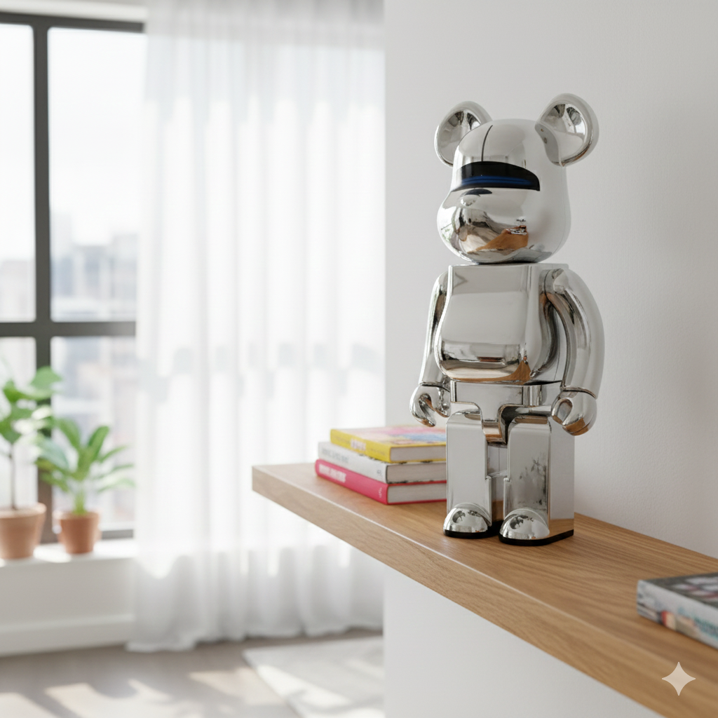 This limited edition Bearbrick turns heads not through color or graphics, but through sheer presence. Its streamlined profile, industrial feel, and flawless surface make it an ideal piece for fans of designer toys, futurist aesthetics, or art that blends technology with human form.